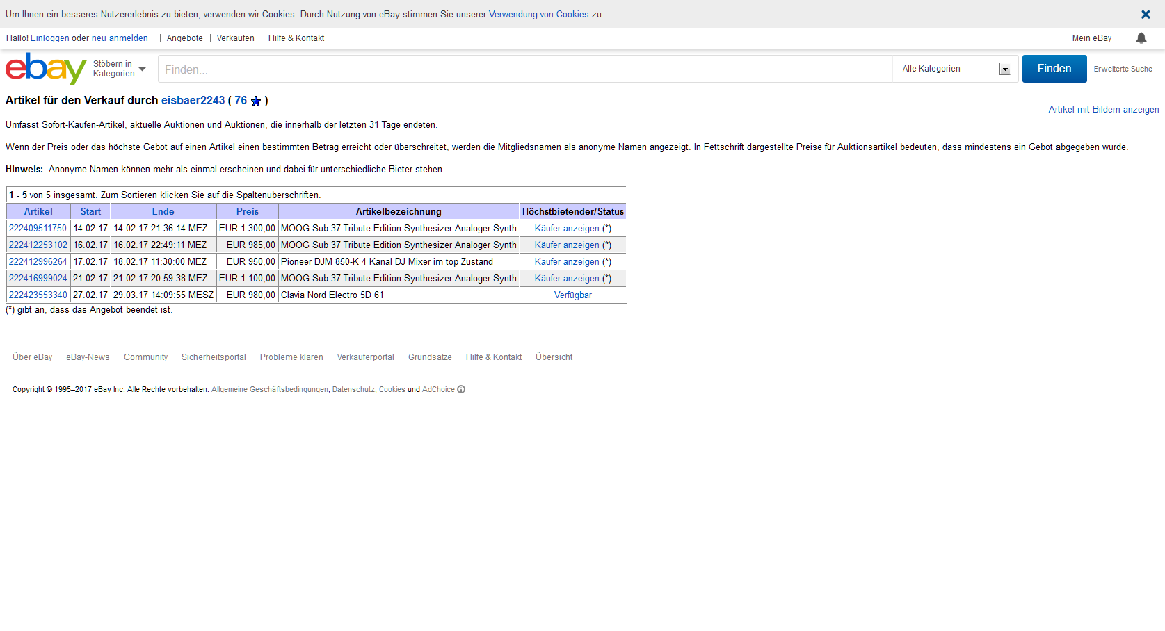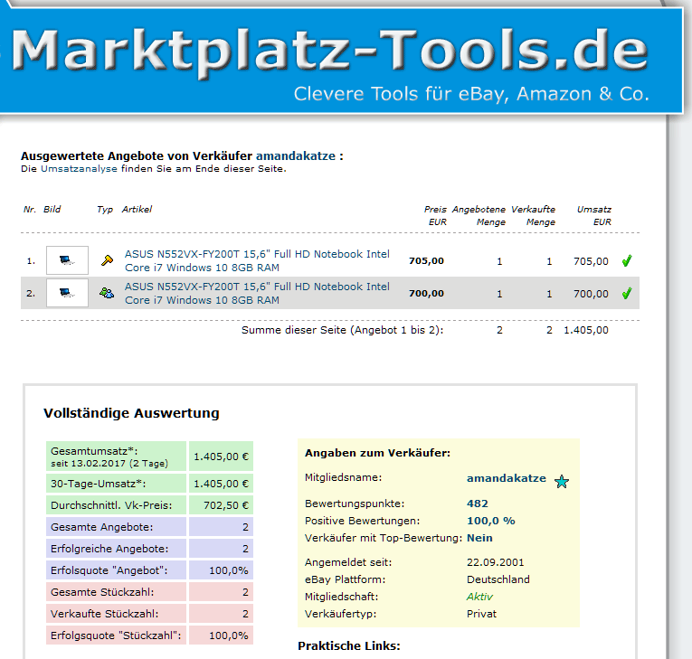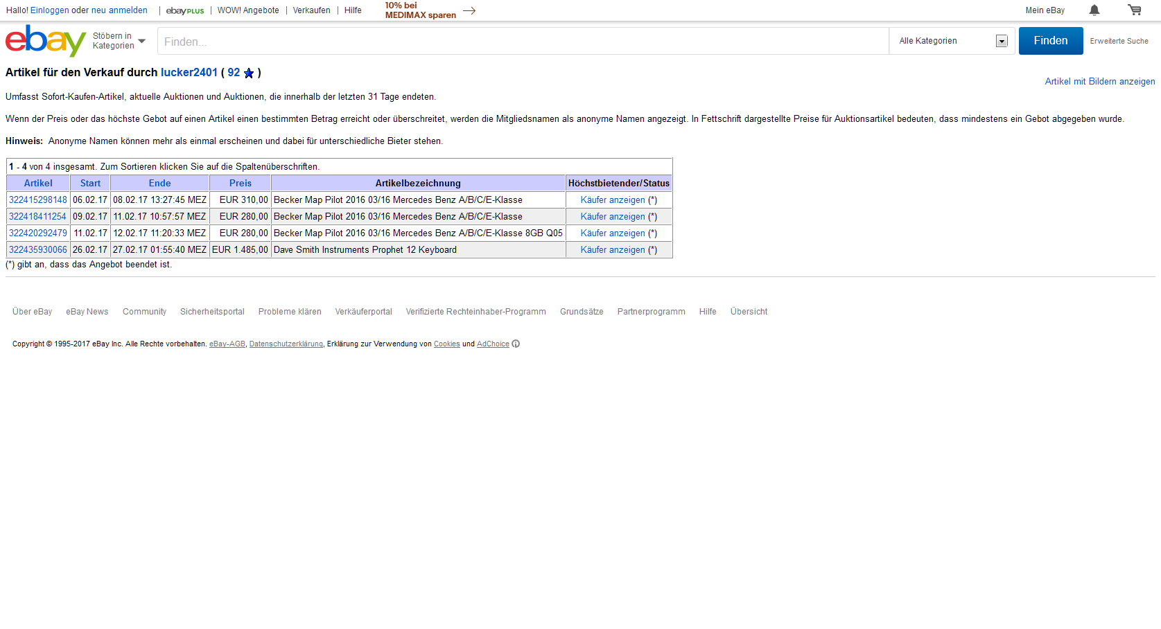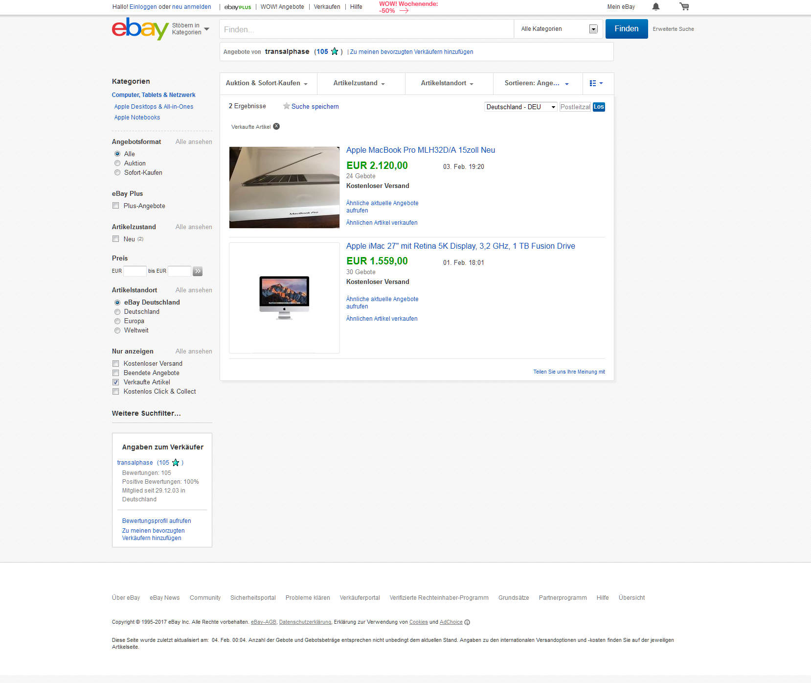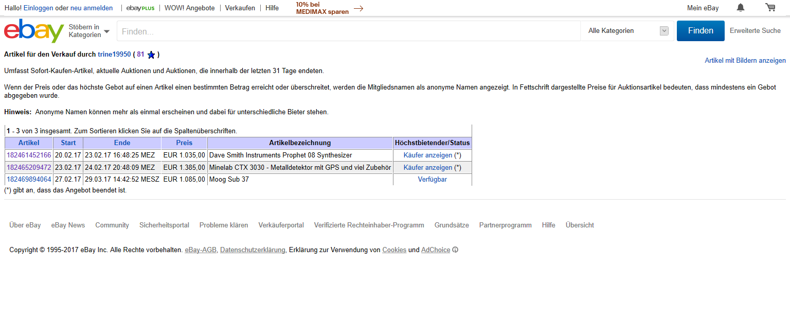 interessant zu sehen, wie viele macbook pro auktionen von personen mit max 30 bewertungen verkauft werden. bei der samsung evo 850 ebenfalls. jetzt weiß ich, warum mein macbook erst nach 2 wochen verkauft war. hab auch nur überweisung angeboten und mit diesem ebay namen knapp über 100 bewertungen.