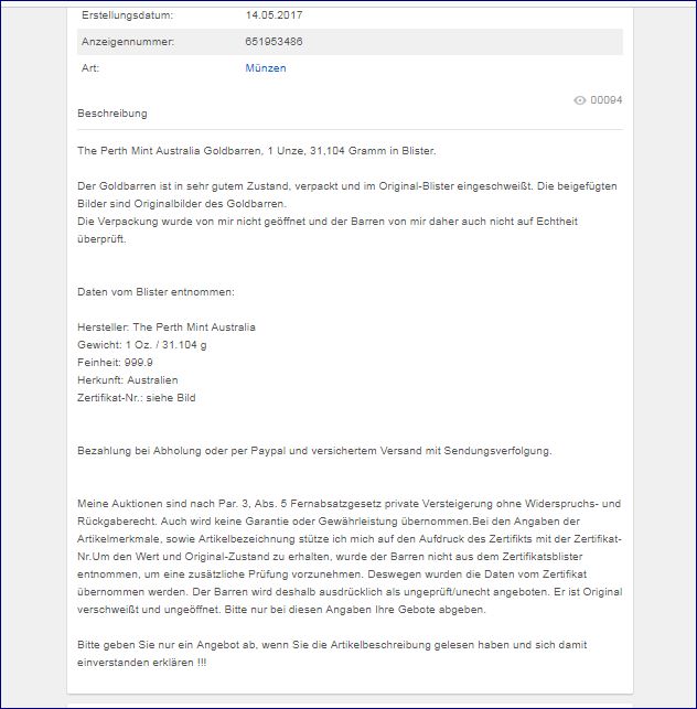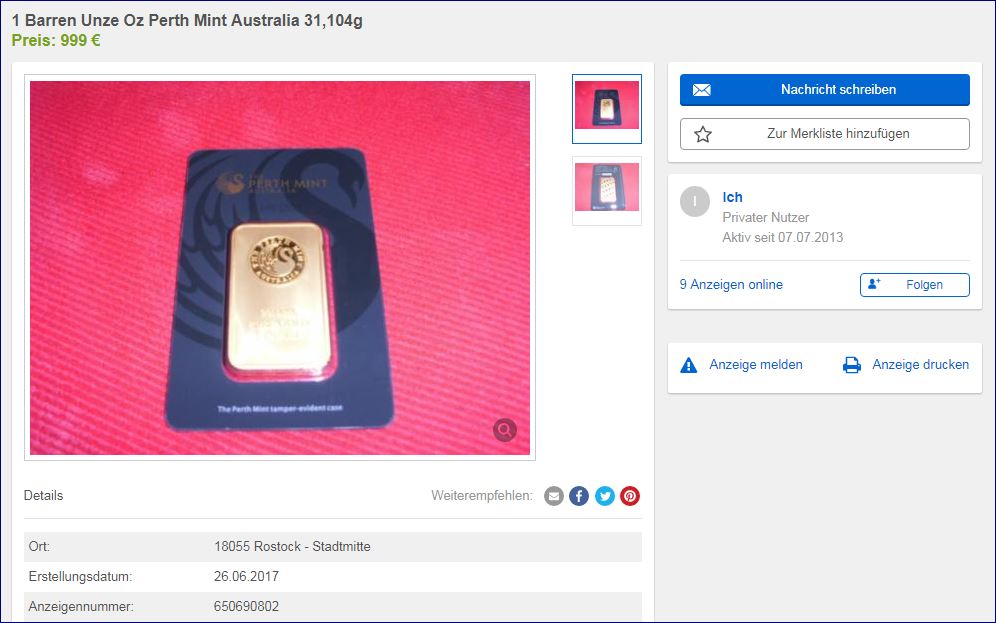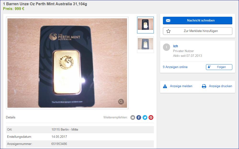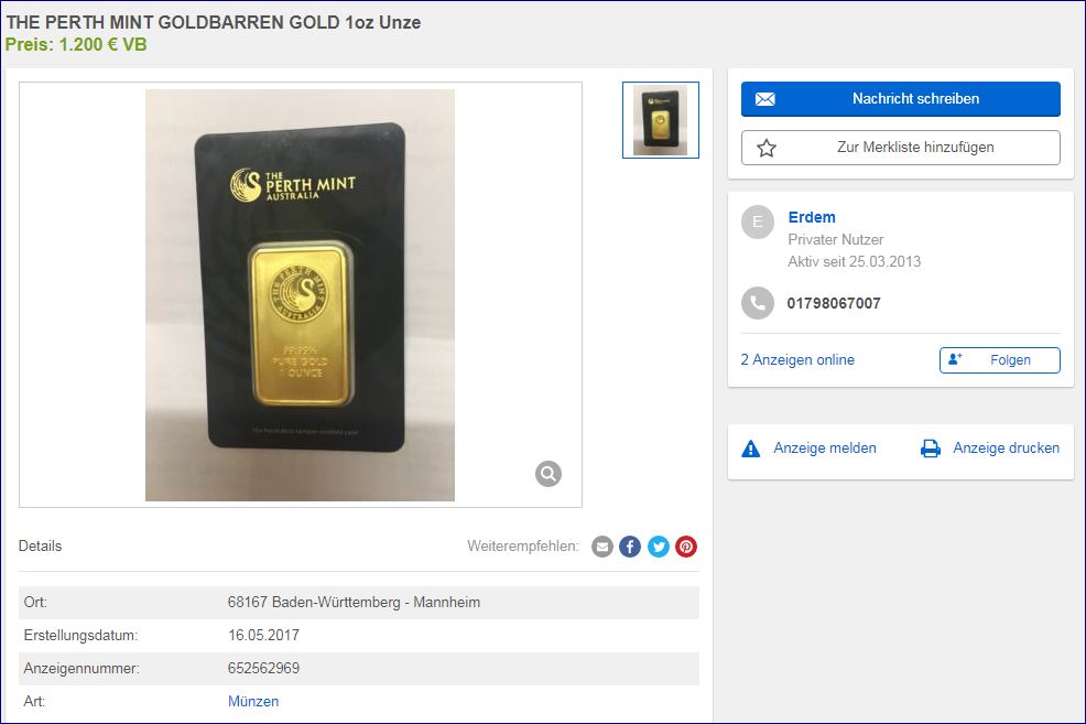 Trödler - eBay-Kleinanzeigen - verkauft Umicore - FAKE