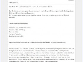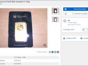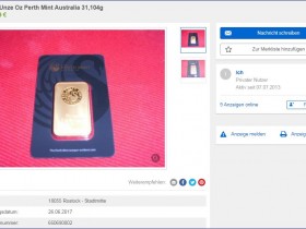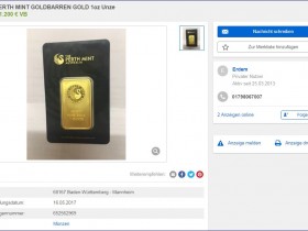 verkauft FAKE - 1 Barren Unze Oz Perth Mint Australia 31,104g - für 999 €