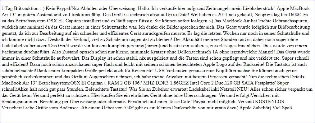 Die angebliche Frau Julia Schmidt nimmt jeden absurd niedrigen Preisvorschlag an und wird doch nie liefern, da alle Fotos und ein Teil der Artikelbschreibungen geklaut sind.