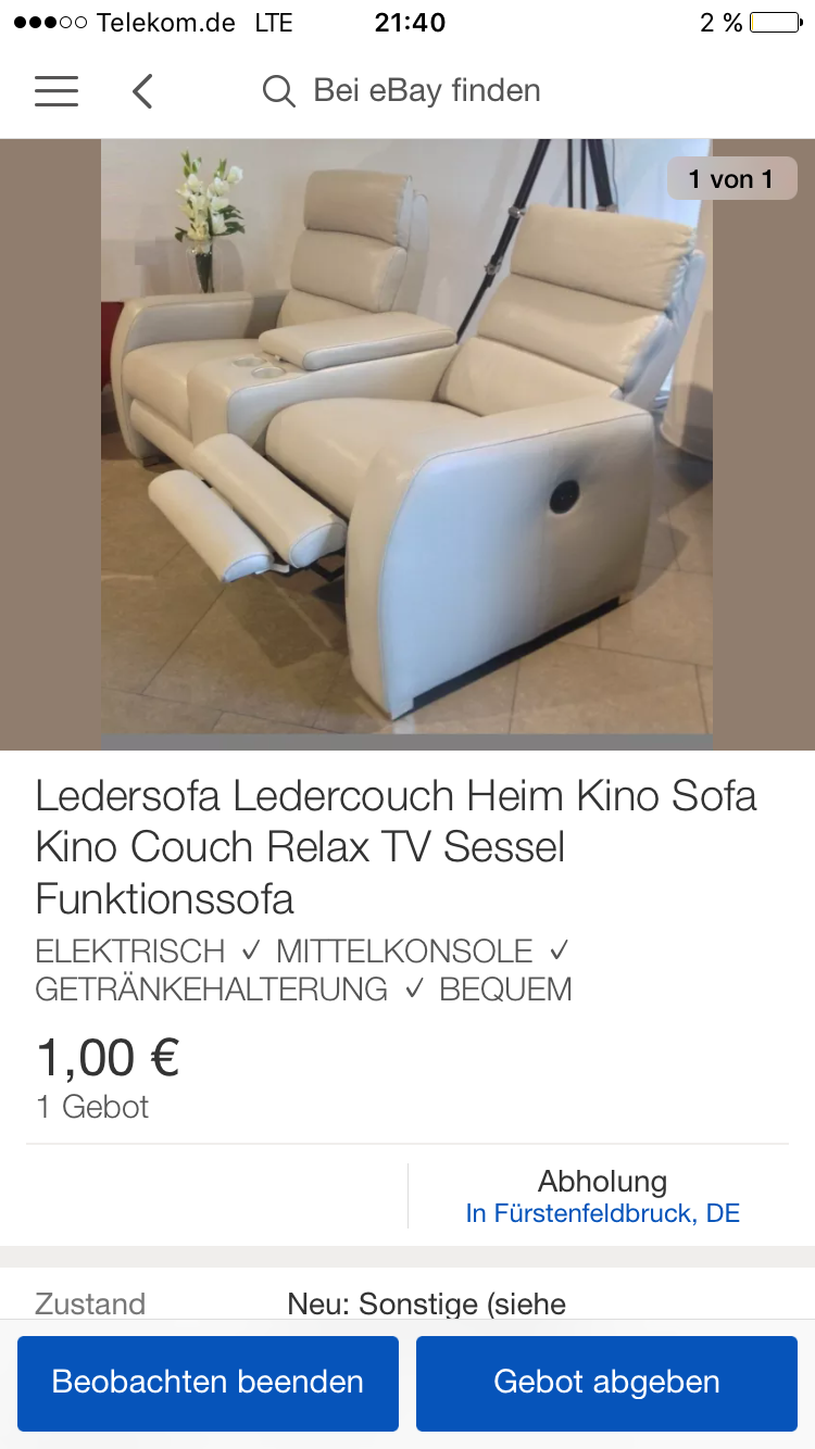 • Meinst du den hier http://www.ebay.de/itm/Ledersofa-Ledercouch-Heim-Kino-Sofa-Kino-Couch-Relax-TV-Sessel-Funktionssofa-/262129017471 das Bild ist ja wie das von dir: der helle Sessel auf den Fliesen