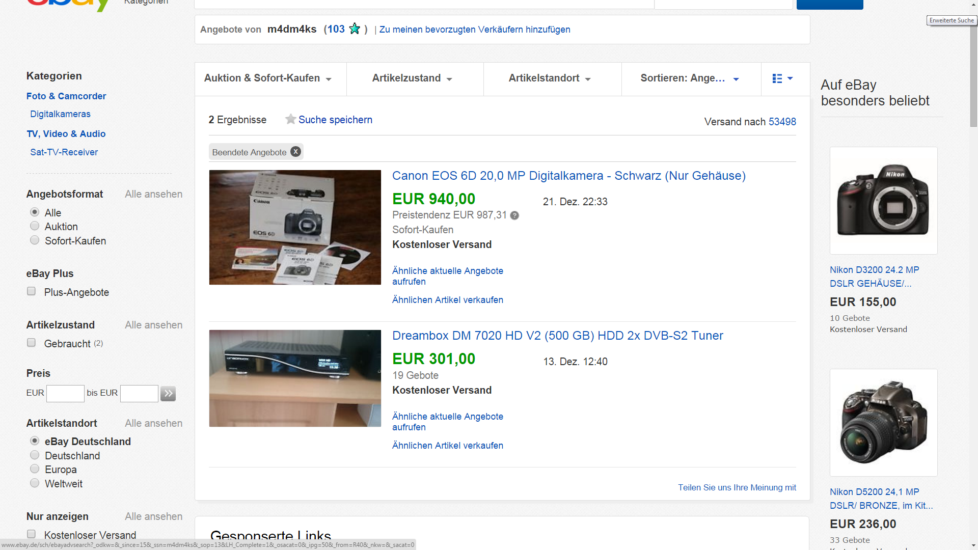 Betrugsserie mit gehackten eBay-Accounts. Dh, ein Unbefugter hat sich die Passworte dieser Accounts verschafft und missbraucht sie für betrügerische Zwecke. Angeboten werden hochwertige ( ca 700 - 1000 EUR ) gebrauchte Artikel, die Bilder + Beschreibungen kopiert der Täter einfach bei anderen Anbietern.