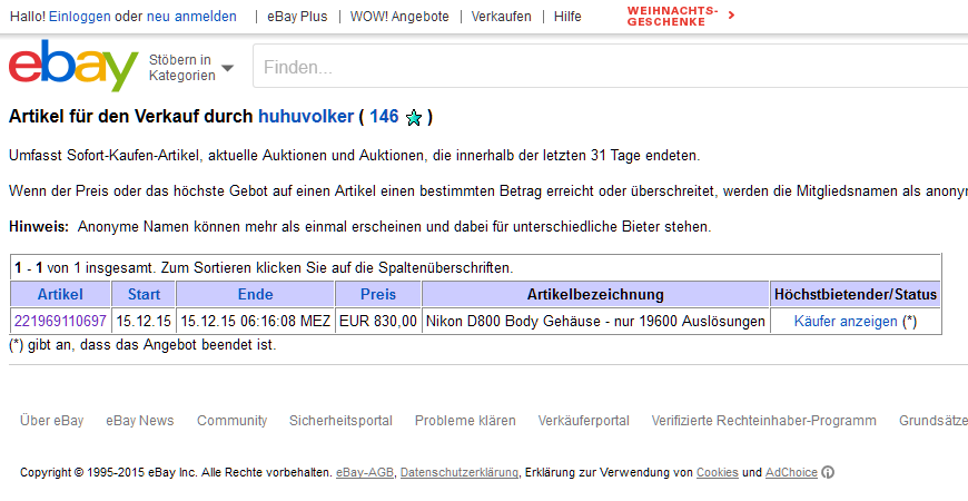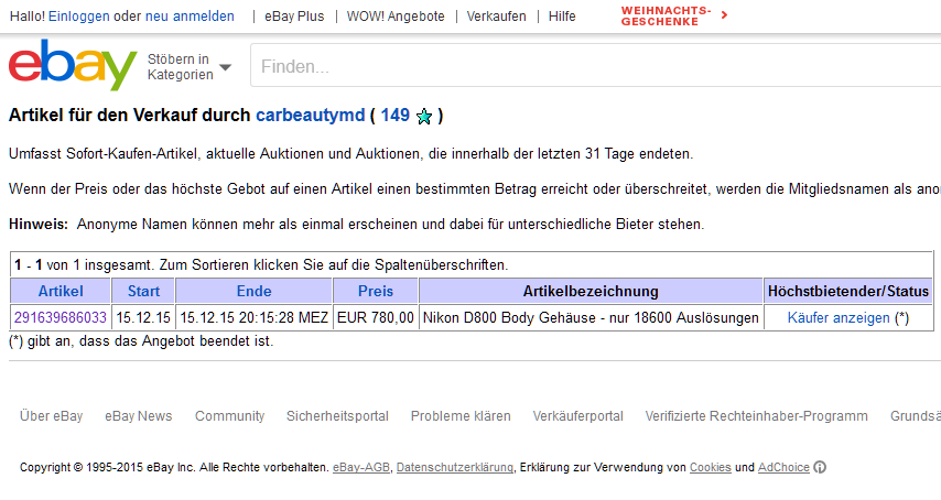 1.) Speichere Dir Deine Auktion oder Kleinanzeige sofort ab und drucke sie auch aus.