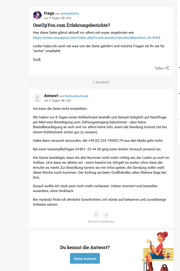 ); - Betrügern ihr restliches Leben irgendwo unter Palmen ungewollt zu finanzieren.!!! WARNUNG VOR DEM NEUEN FAKE-SHOP "oneupyou" !!!
