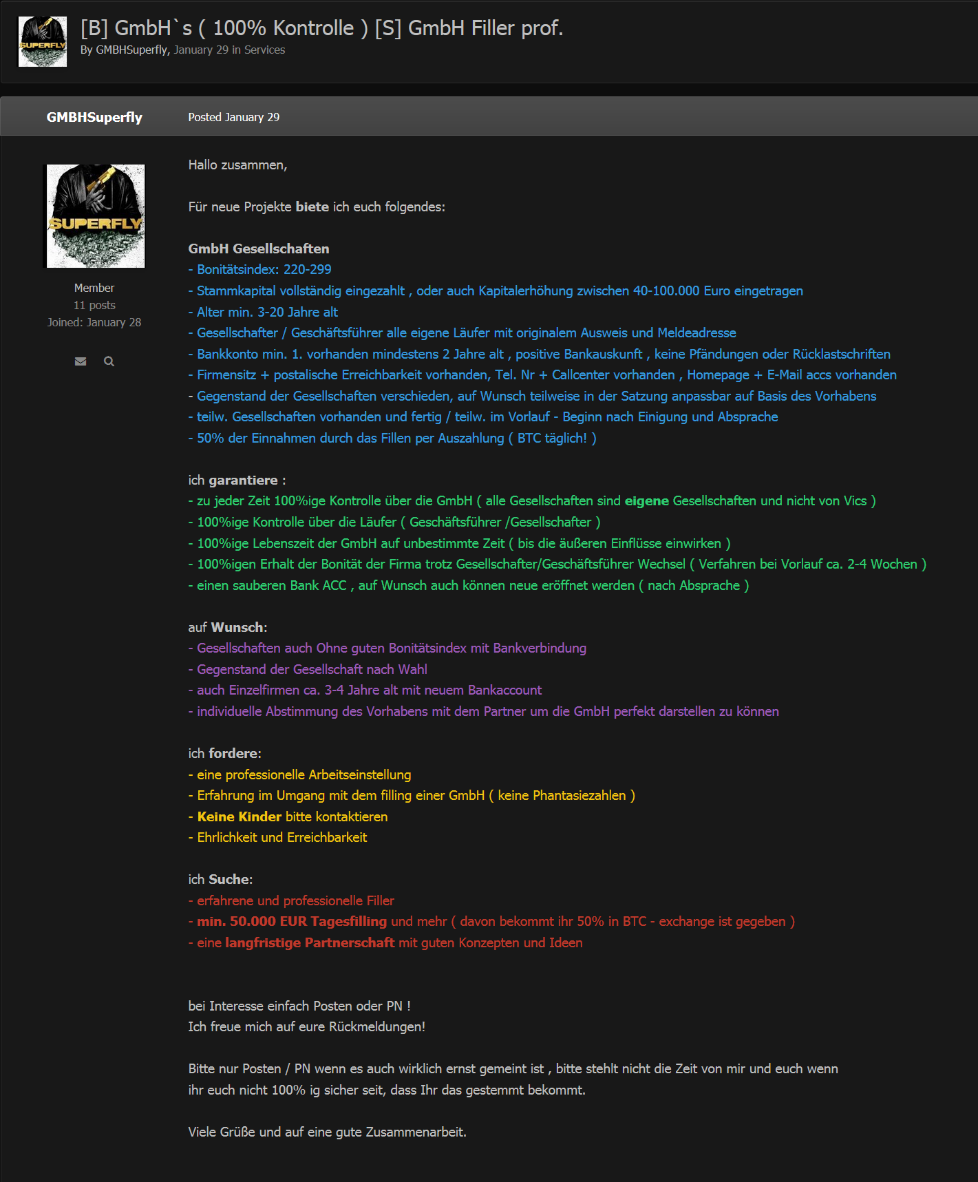 Doch der Fraud-Szene ist nicht entgangen, dass sich solche Onlineshops samt dazugehöriger Bankkonten sehr viel besser dazu eignen, über einen längeren Zeitraum erfolgreich zu bescheixxen. Hat man bis jetzt noch den Aufwand gescheut - oder man war auch einfach nur zu bescheuert dazu - immer mehr scheinen jetzt aber auf den Zug aufzuspringen. Kein Wunder eigentlich... was die Szene dazu an Fertigkeiten braucht, unterscheidet sich ja nicht von denen, die sie schon beim Eröffnen von Bankkonten auf Fake-Daten oder geklauten Dokumenten an den Tag legen. Das Ziel dürften hier Vorratsgesellschaften und Firmen aus zweiter Hand sein, bei deren Übernahme gewisse Schlampigkeit der Verkäufer vorausgesetzt werden kann. Bei Preisen einer Vorrats-UG für lächerliche 2.500 Euro inklusive bestehendem Bankkonto natürlich ein logischer Fortschritt, auf den man sich künftig einstellen sollte. So kommt wohl zu den bereits bestehenden Ratschlägen, Onlineshops vor dem Kauf gründlich auf alle Merkmale eines Fakeshops zu prüfen, folgender hinzu: