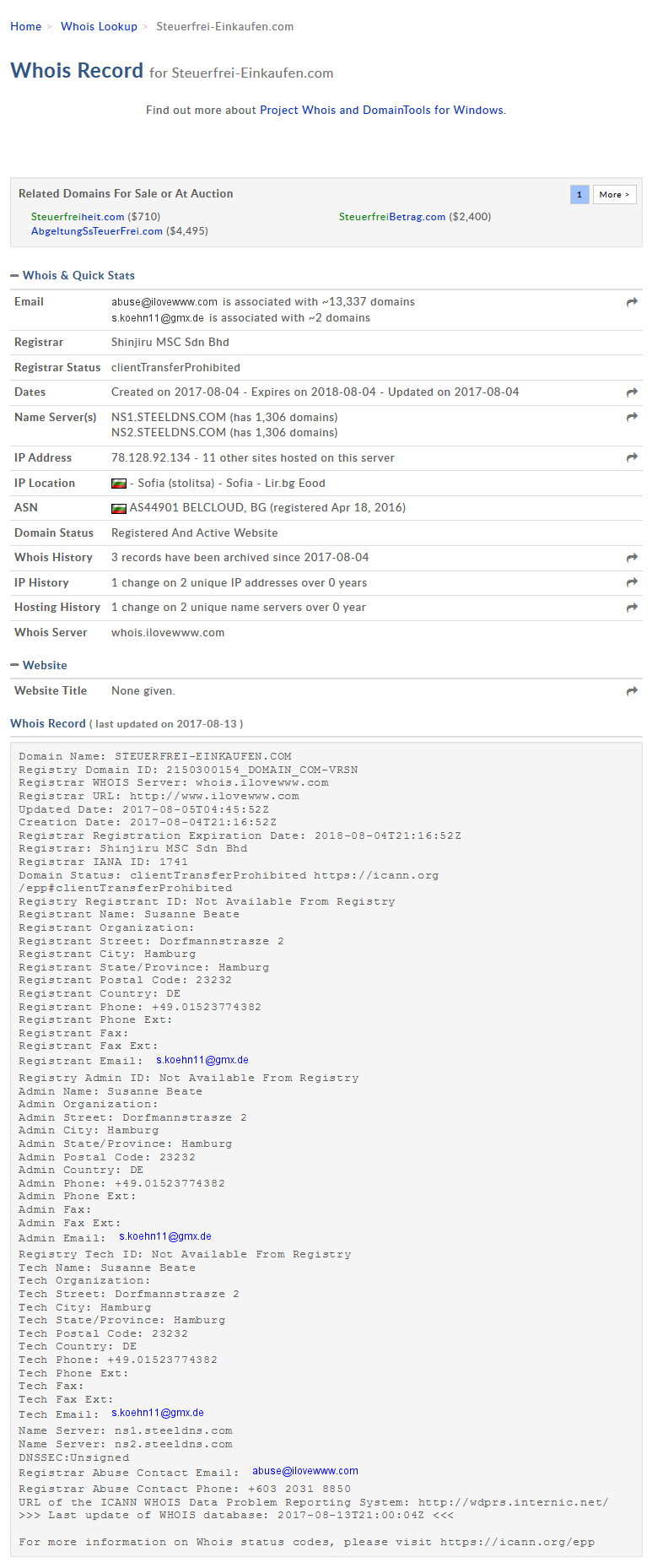E-Mail Adresse : service@steuerfrei-einkaufen.com