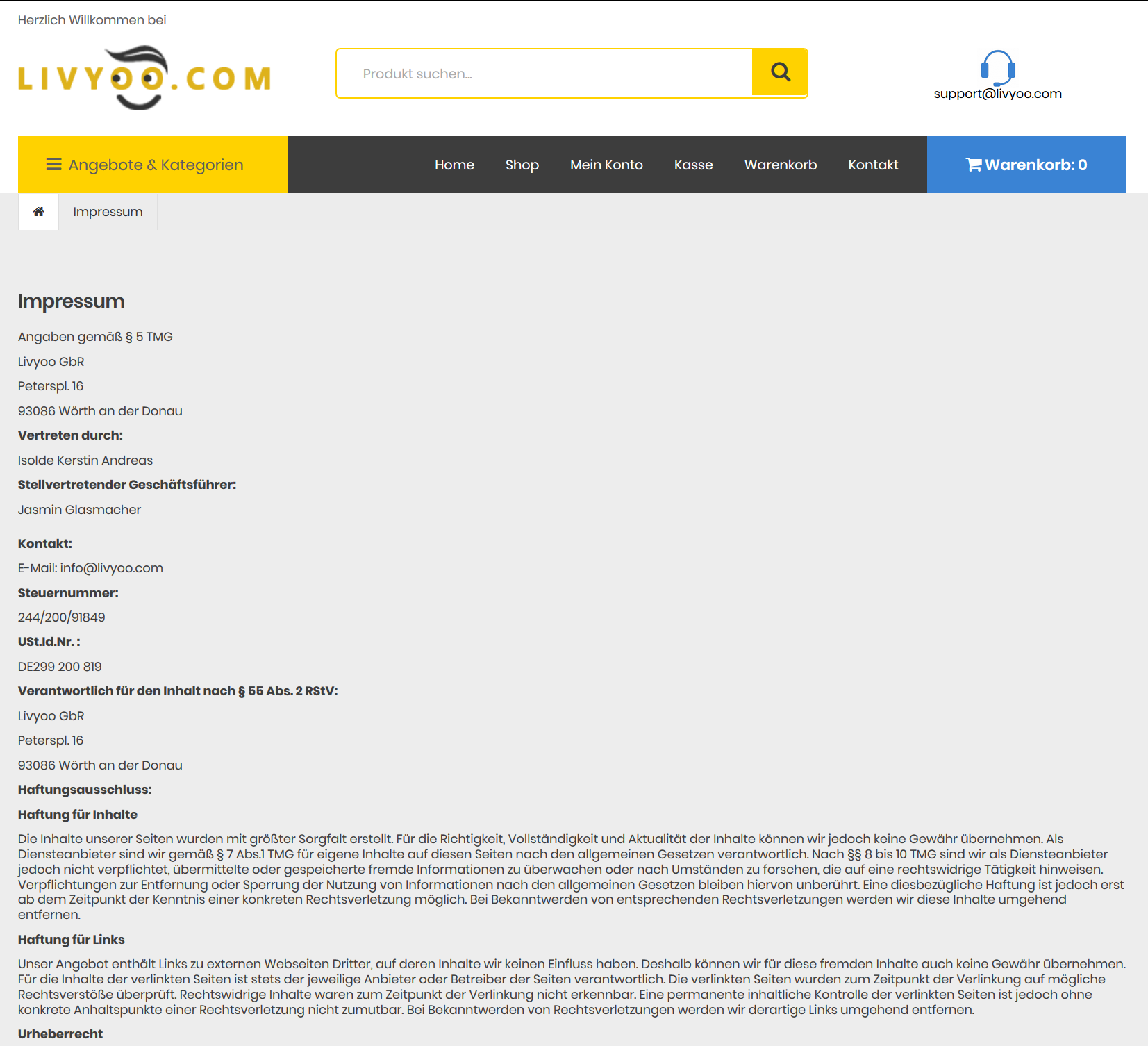 Rechtswidriges Impressum, die Daten der darin benannten Personen wurden entweder frei erfunden oder gestohlen und werden nun für betrügerische Zwecke missbraucht. Keine Angabe einer Telefonnummer und nicht verifizierbare Daten... eine GbR mit diesem Namen existiert nicht. Einzige Zahlungsmöglichkeit: Vorkasse per Überweisung!