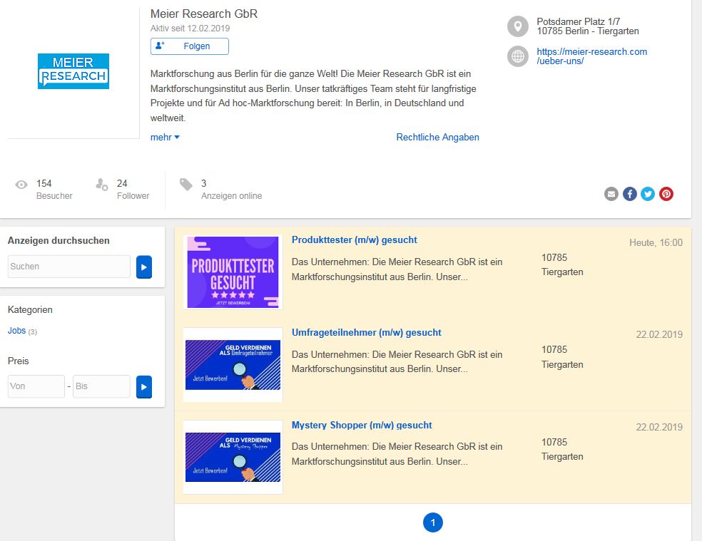 Warnung vor meier-research.com / Betrügerische Stellenangebote / Anwerbung von Produkttestern / Missbrauch des VideoIdent-Verfahrens zur ungewollten Kontoeröffnung bei diversen Banken