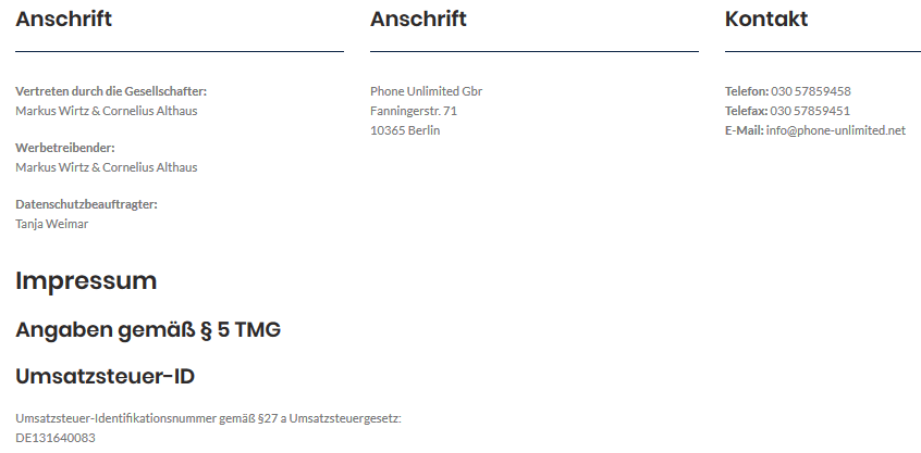 Rechtswidriges Impressum, die Daten der darin benannten Personen / Firmen wurden entweder