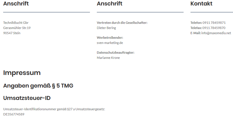 Rechtswidriges Impressum, die Daten der darin benannten Personen / Firmen wurden entweder