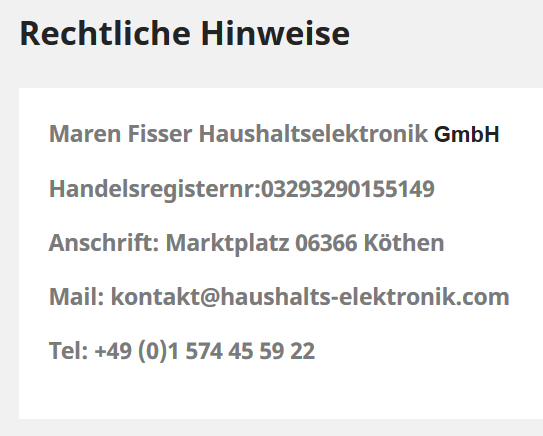 Rechtswidriges Impressum, die Daten der darin benannten Personen / Firmen wurden entweder