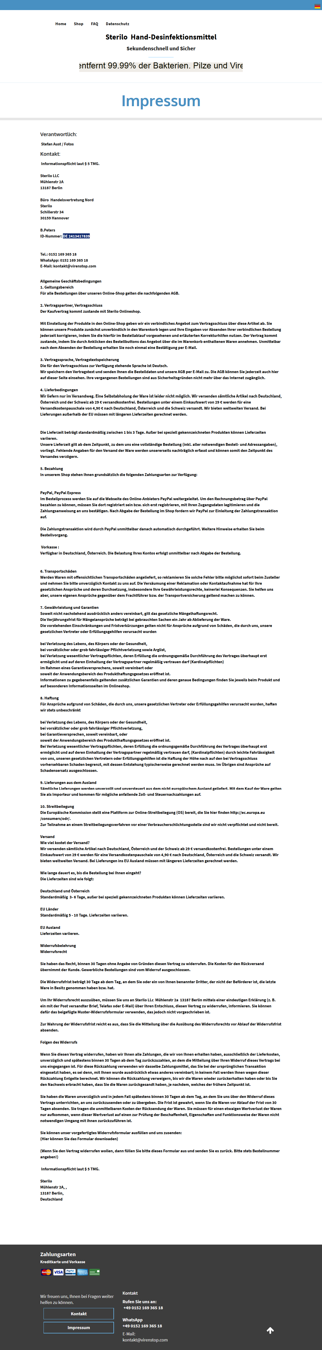 Fakeshop virenkiller24.de - kontakt@virenstop.com - 015216936518 - DE2413417839