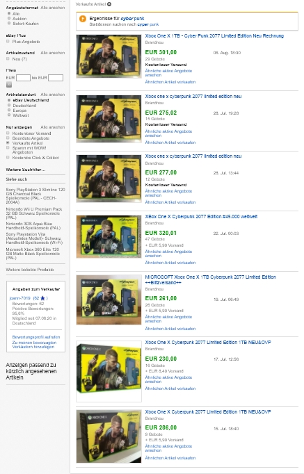 Moin, hab vom Ebay Mitglied joann-7019 Ende Juli einen Artikel (https://www.ebay.de/itm/Xbox-one-x-cyberpunk-2077-limited-edition-neu/392887820962) ersteigert, überwiesen und nicht erhalten bis heute, statt dessem nur schlechte Ausreden.