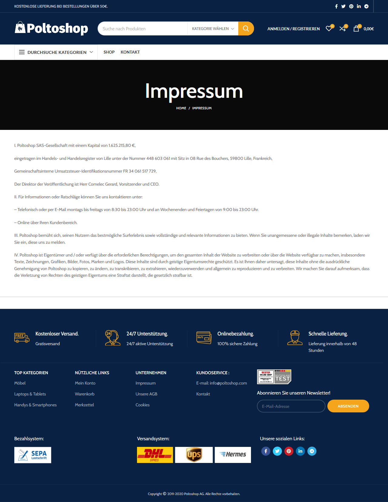 • Fakeshop poltoshop.com - Poltoshop SAS - 08 Rue des Bouchers, 59800 Lille - FR 34 061 517 729