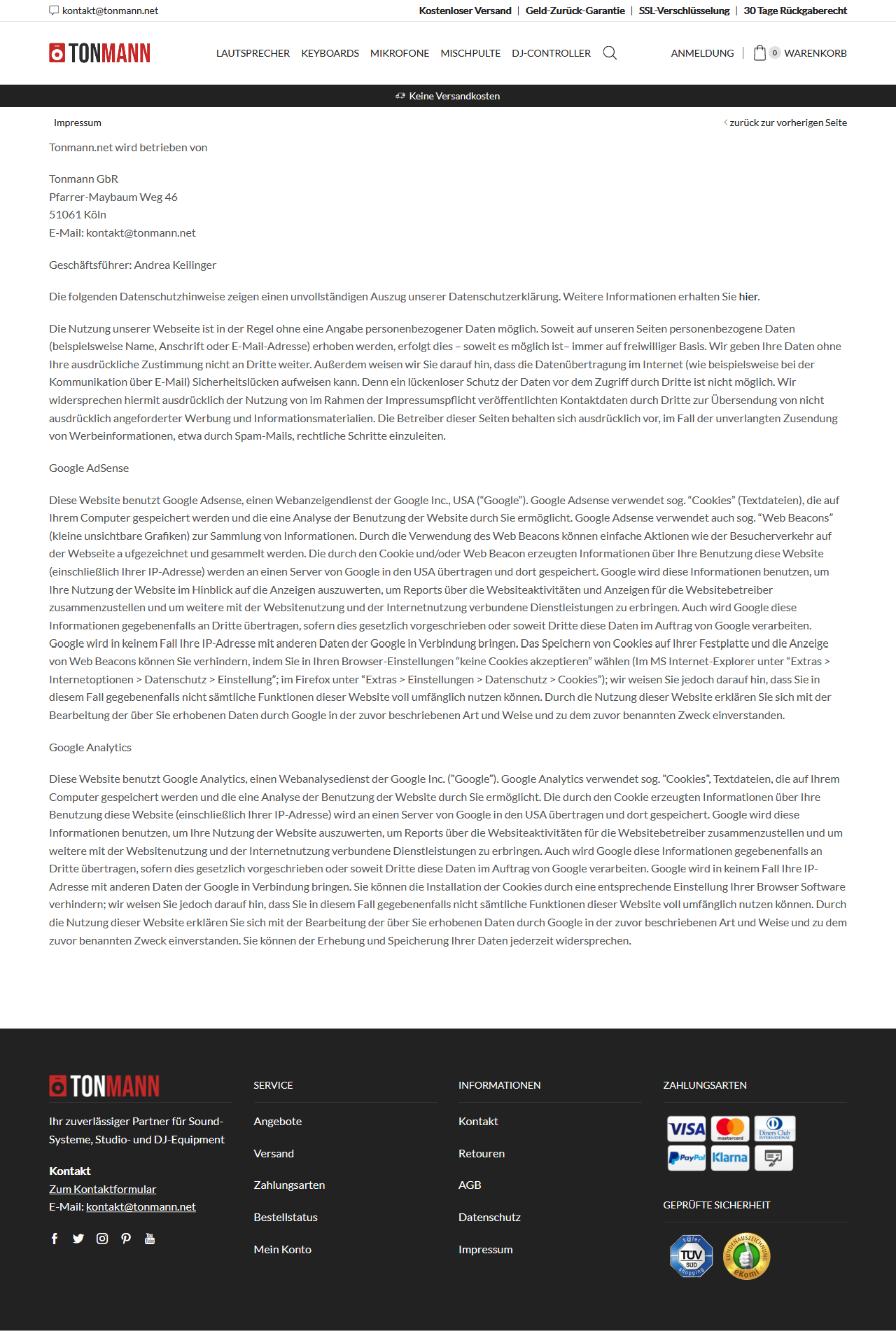 Fakeshop tonmann.net - Tonmann GbR - Pfarrer-Maybaum Weg, 51061 Köln - kontakt@tonmann.net