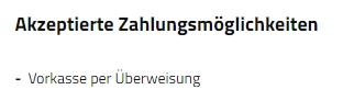 Es ist nur die Bezahlung per Vorkasse möglich.