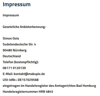 Rechtswidriges Impressum, die Daten der darin benannten Personen / Firmen wurden entweder frei erfunden oder gestohlen und werden nun für betrügerische Zwecke missbraucht.
