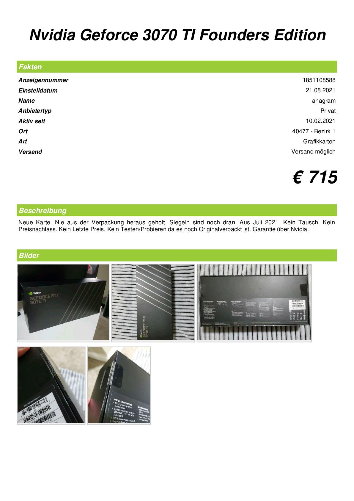 Es geht um eine Karte die ich für über 700 Euro gekauft habe, ich hab Voraus gezahlt als Sicherheit hat er mir noch ein Foto von der Karte gemacht und mein Name aufs Blatt geschrieben.