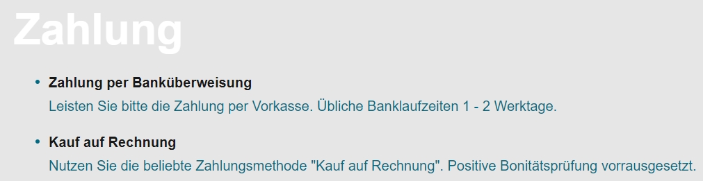 Es ist nur die Bezahlung per Vorkasse möglich.