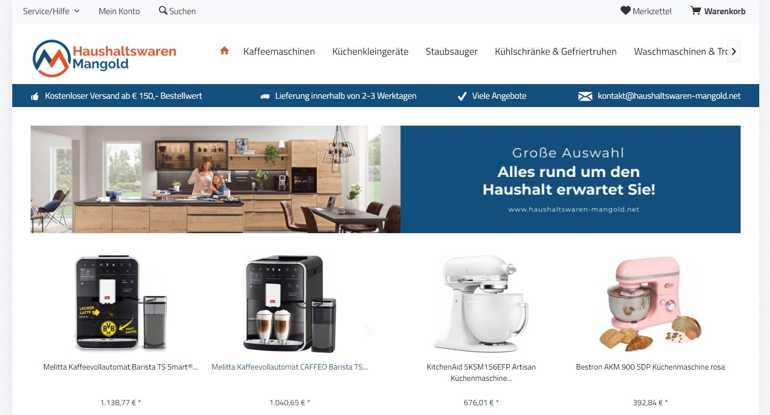 E-Mail: info@haushaltswaren-mangold.net (9:00-19:00 Uhr) Montag bis Samstag
