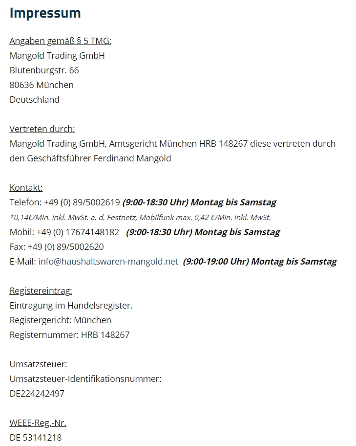 Fakeshop haushaltswaren-mangold.net – Mangold Trading GmbH - Blutenburgstraße 66 - 80636 München – info@haushaltswaren-mangold.net – +49 (0) 89/5002619 - Mobil: +49 (0) 17674148182 - DE224242497 - Alles Fake – Alles Betrug – Hier gibt es keine Ware.