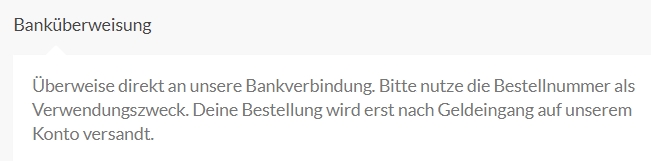 Es ist nur die Bezahlung per Vorkasse möglich.