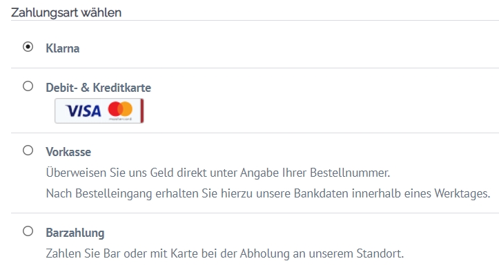 Es ist nur die Bezahlung per Vorkasse oder Kreditkarte möglich.