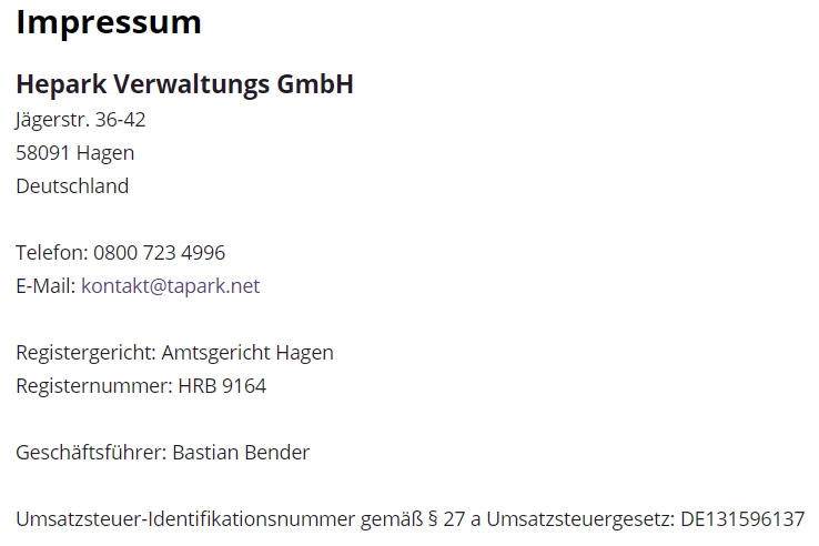 Rechtswidriges Impressum, die Daten der darin genannten Firma wurden gestohlen