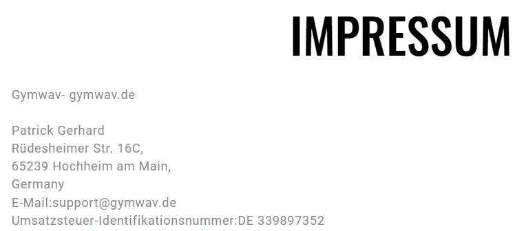 Fakeshop gymwav.de – Gymwav - Rüdesheimer Straße 16C - 65239 Hochheim am Main, Germany – support@gymwav.de – DE 339897352 – Achtung: Datenmissbrauch einer realen Firma - Alles Fake – Alles Betrug – Hier gibt es keine Ware.