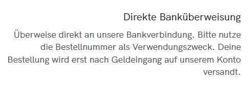 Es ist nur die Bezahlung per Vorkasse möglich.