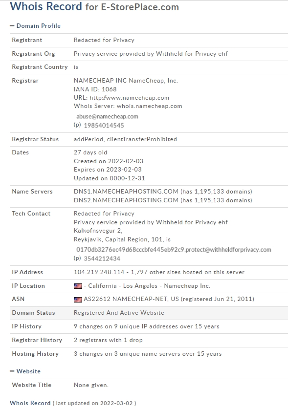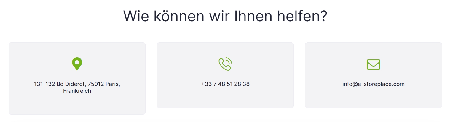 • Fakeshop e-storeplace.com – ESTOREPLACE - 131-132 Bd Diderot - 75012 Paris, Frankreich – info@e-storeplace.com – Telefon: +33 7 48 51 28 38 - Alles Fake – Alles Betrug – Hier gibt es keine Ware.