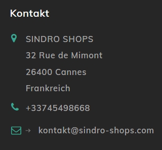 Fakeshop sindro-shops.com – SINDRO SHOPS LLC - 32 Rue de Mimont - 26400 Cannes, Frankreich – kontakt@sindro-shops.com – Telefon: +33745498668 - Alles Fake – Alles Betrug – Hier gibt es keine Ware.