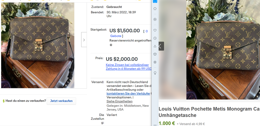 Was mich aber nun stutzig macht, ist, dass der VK- dieselbe Tasche und die gleichen Fotos heute gegen 13.00 Uhr nochmals neu bei Ebay Kleinanzeigen eingestellt hat, dabei habe ich diese Tasche doch gekauft. Aktuell hat er die Tasche Louis Vuitton Metis unter der Kleinanzeigen ID 2066023298 inseriert.