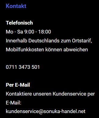 Fakeshop sonuka-handel.net - Sonuka Handel GmbH - Stuttgarter Str. 106, 70736 Fellbach - (0711) 3473 501 - impressum@sonuka-handel.net ** kundenservice@sonuka-handel.net - DE307791649