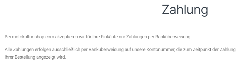 Es ist nur die Bezahlung per Vorkasse möglich.