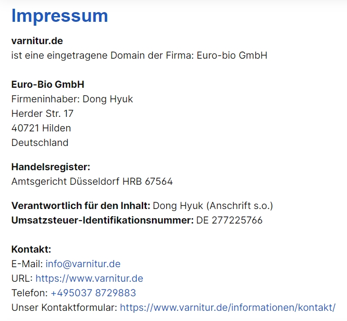 Rechtswidriges Impressum, die Daten der darin genannten Firma wurden gestohlen und werden nun für betrügerische Zwecke missbraucht.