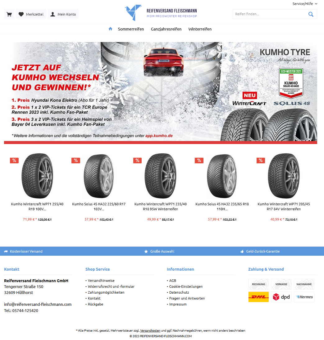 Fakeshop: reifenversand-fleischmann.com - Reifenversand Fleischmann GmbH - Tengerner Straße 150 - 32609 Hüllhorst - 05744-125420 - service@reifenversand-fleischmann.com - DE617460986 - Fake Shop - Betrug