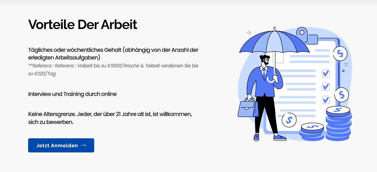 Gesucht werden auch hier wieder mal Opfer, die mit viel Geld für wenig Arbeit gelockt werden.