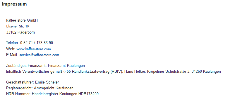 Fakeshop: kaffee-store.com - kaffee store GmbH - Elsener Str. 19 - 33102 Paderborn - 05271/1738390 - service@kaffee-store.com - Fake Shop - Betrug