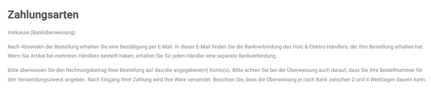 Es ist nur die Bezahlung per Vorkasse möglich.