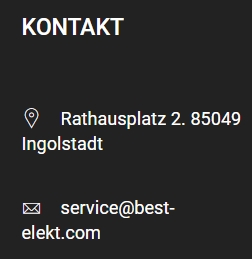 • Fakeshop best-elekt.com – Best Elekt - Rathausplatz 2 - 85049 Ingolstadt - Schützenstraße 144 - 44147 Dortmund – service@best-elekt.com – Alles Fake - Hier gibt es keine Ware