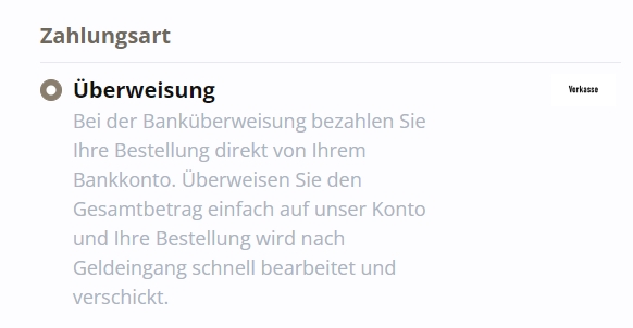 Es ist nur die Bezahlung per Vorkasse möglich.