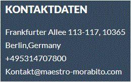 Fakeshop maestro-morabito.com - MAESTRO MORABITO - Frankfurter Allee 113-117, 10365 Berlin - Kontakt@maestro-morabito.com. Die im Impressum angegebene Telefonnummer gehört zu einer Berufsschule in Braunschweig!