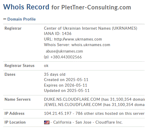 Warnung plettner-consulting.com - Wird genutzt um Bankdrops aufzumachen!