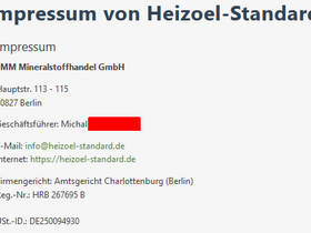 Fakeshop: heizoel-standard.de - Datemmissbrauch - Hauptstr. 113-115 - 10827 Berlin - info@heizoel-standard.de - DE250094930 - Fake Shop - Betrug