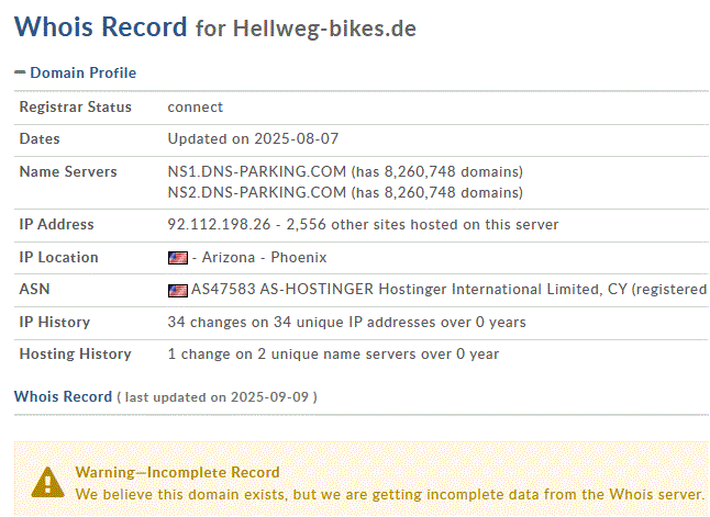 • Fakeshop hellweg-bikes.de - Datenmissbrauch der sich in Liquidation befindlichen Fahrrad GmbH Hellweg! - Hellweg 2, 59597 Erwitte - info@hellweg-bikes.de - Fahrräder Elektrofahrräder Rennräder