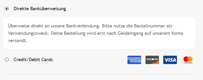 Bezahlung per Vorkasse oder Kreditkarte möglich.