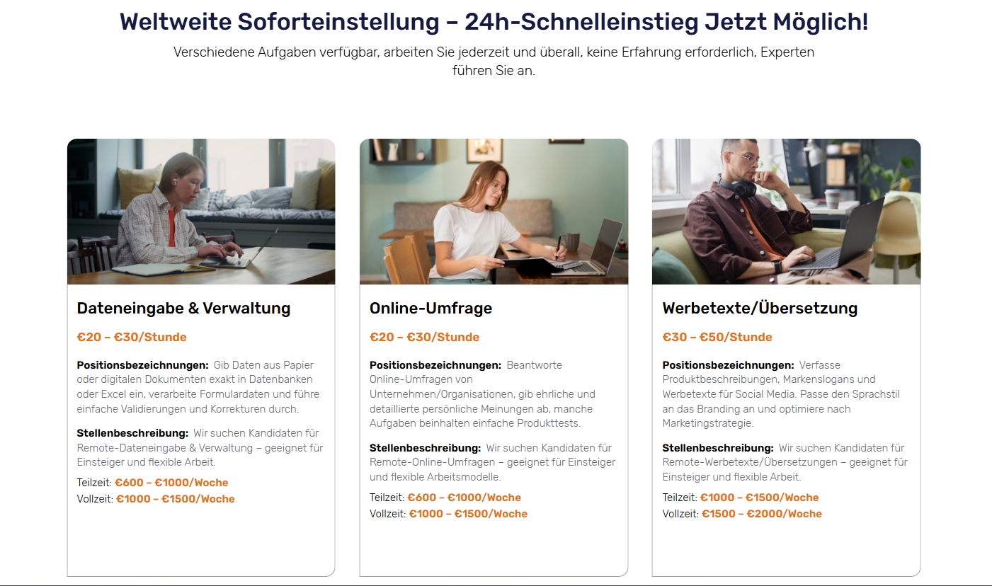 Gesucht werden auch hier wieder mal Opfer, die mit viel Geld für wenig Arbeit gelockt werden.
