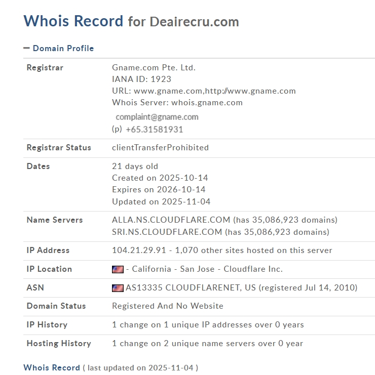 Warnung vor deairecru.com - Betrügerische Stellenangebote/Datenmissbrauch - Anwerbung von Versand-/Verkaufs-/Finanzagenten - Eröffnung von Bankkonten über das Post- oder VideoIdent-Verfahren bzw. zur Verfügungstellung des eigenen Kontos.