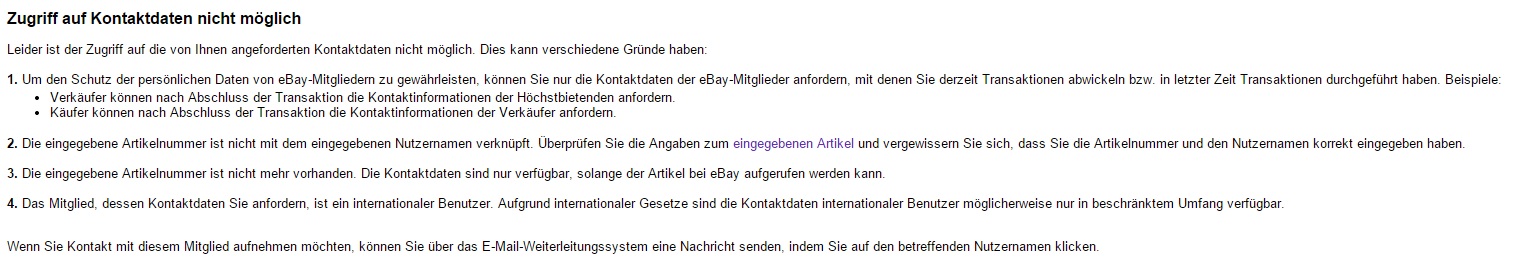 und abgesehen davon musst du dir von EBAY die Anmeldedaten deines "Vertragspartners" besorgen, es besteht immerhin die Möglichkeit, dass sich ein "echter Kunde" nur die Abgreiftexte kopiert haben könnte.